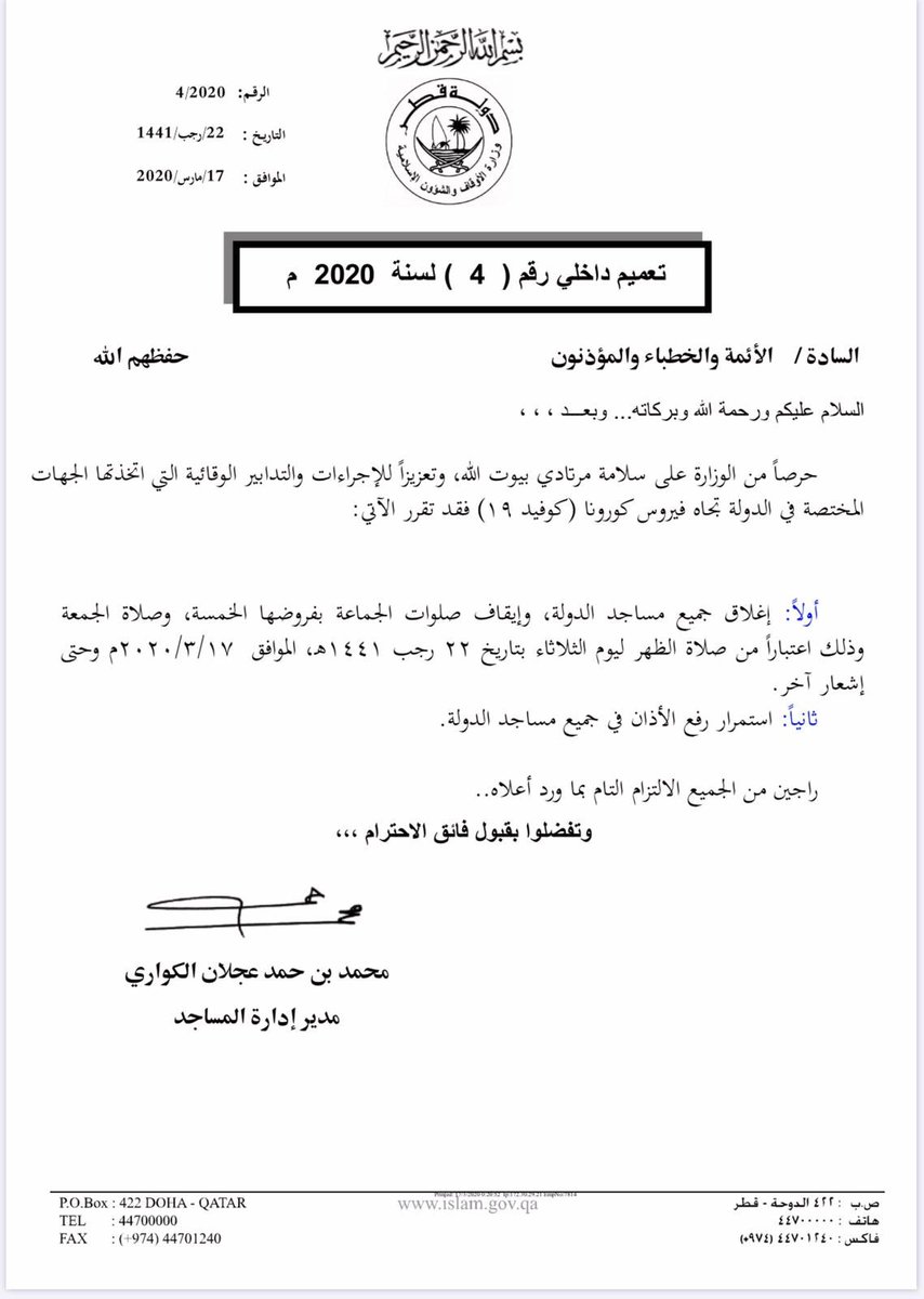 خالد جاسم On Twitter أغلاق جميع المساجد في الدولة مع أستمرار رفع الآذان الله المستعان كورونا قطر